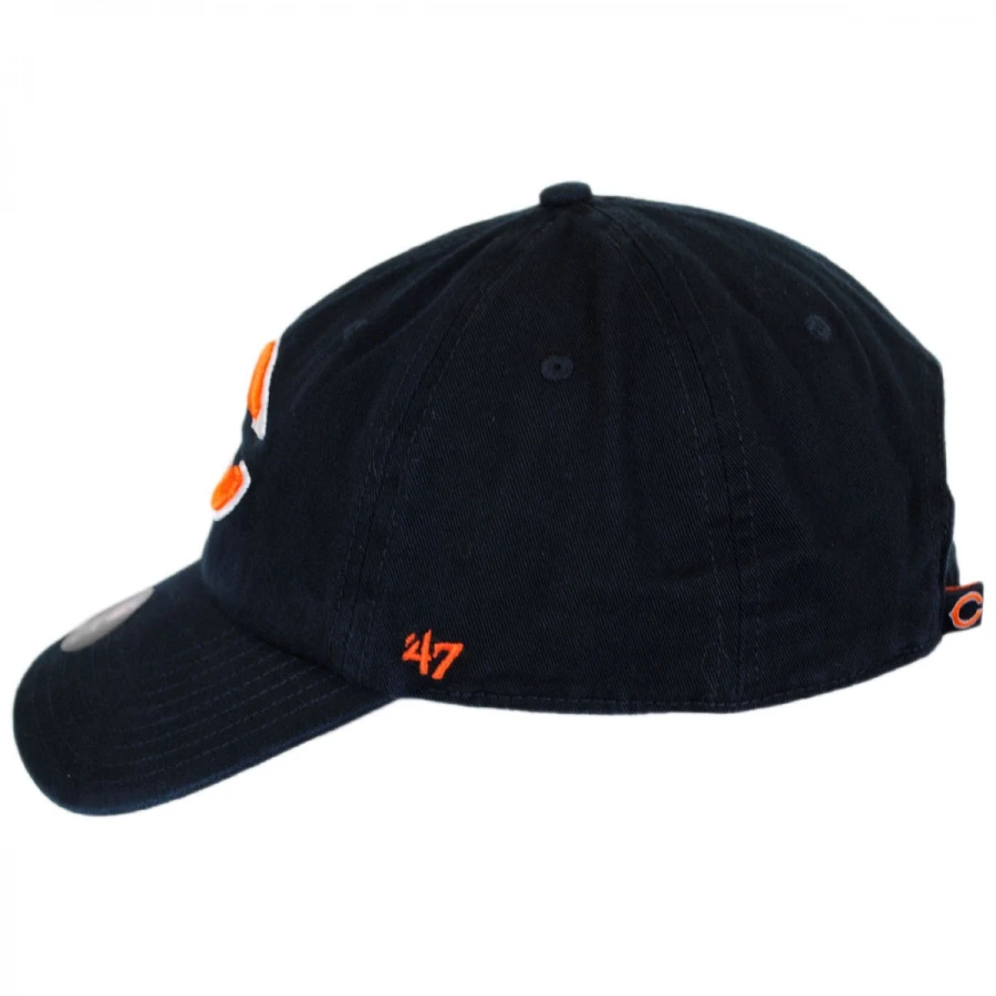 Garment washed for a broken-in look and feel, this navy blue low-crown relaxed baseball cap is constructed of quality cotton twill detailed with raised embroidery of the Chicago Bears NFL logo.