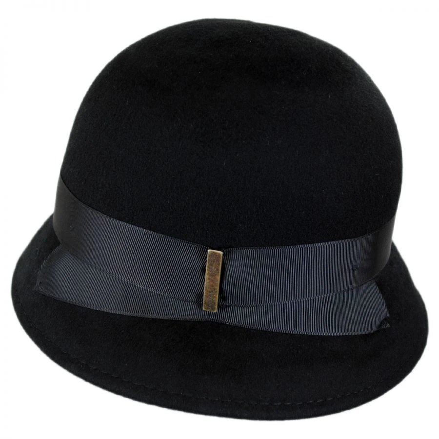 Perfect for cooler seasons, the Alcott Wool Felt Cloche Hat by Betmar is incredibly chic and stylish. Made of soft and packable wool felt, this style can stand up to packing and crushing and will pop back to shape easily. Adorned with a sleek metal Betmar side pin and classic grosgrain ribbon hat band, this style is available in a variety of fall and winter-ready colors.