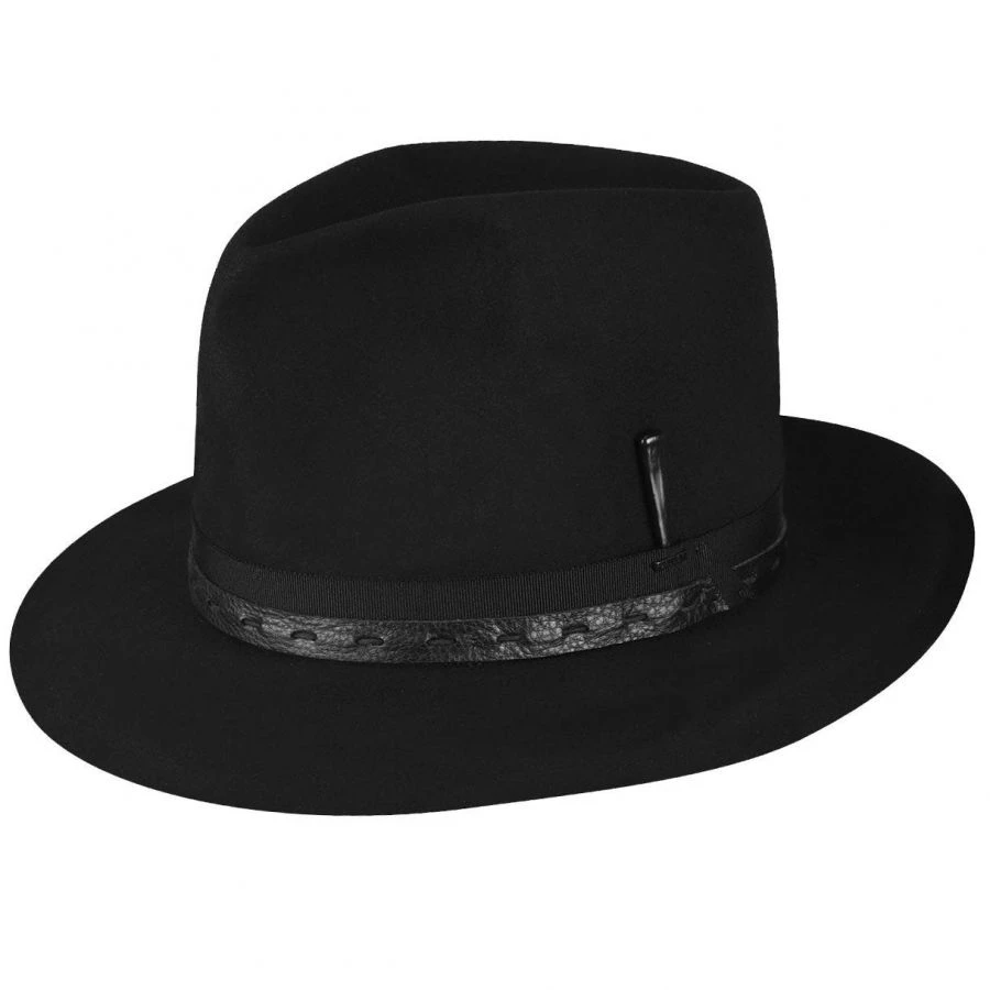 Bailey’s Briles 2.0…the Brodnax Shapeable Open Crown Wool Felt Fedora Hat! Like the Briles, the Brodnax is an innovative hat that is shapeable. The open crown and brim is customizable, giving you countless looks in one hat. With the Brodnax, Bailey has added a Japanese grosgrain ribbon overlaid with a hand laced leather band and finished in a diagonal. Handcrafted in the USA and unlined.