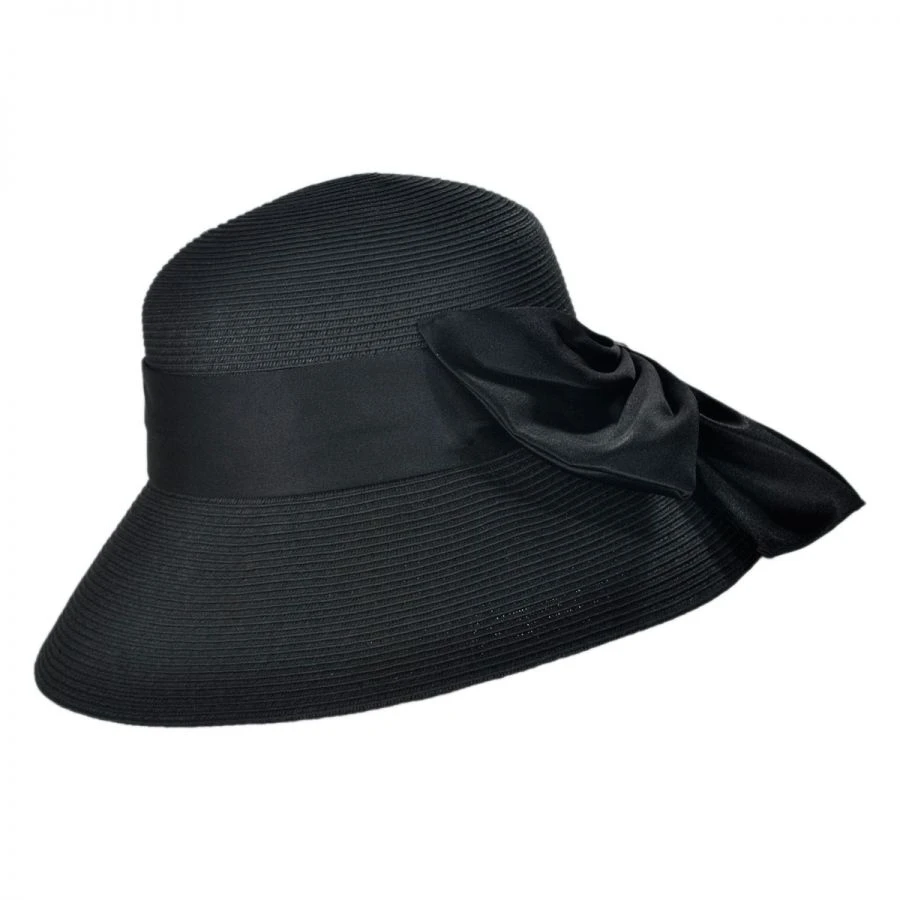 Feel your most glamorous in the Big Bow Toyo Straw Lampshade Hat. A luxurious smooth satin bow wraps gracefully around the crown. Simple, elegant and sophisticated!