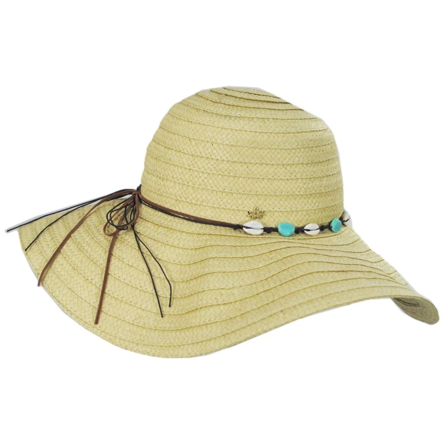 Cappelli Straworld’s Dover Braided Toyo Straw Sun Hat is the sun hat of your beach day dreams! Featuring a wax cord and faux leather layered hat band adorned with shells and faux turquoise beads. The body is a braided toyo straw with an extra wide floppy brim. The boho vibes just don’t quit!