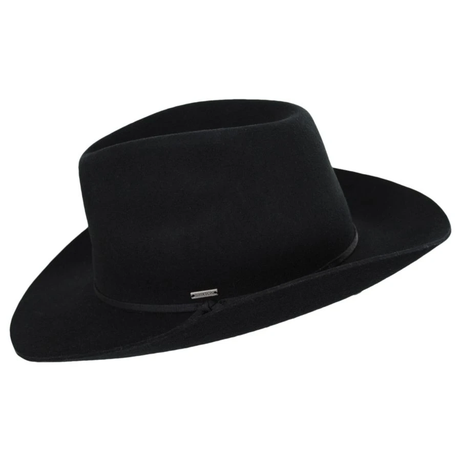 Brixton Hats is bringing us a laidback western style with the Duke Wool Felt Cowboy Hat. Features a stiff body with a teardrop crown and classic cowboy curved brim. The ultra narrow grosgrain ribbon hat band adds just a touch of sophistication while the raw edge brim balances it back to a relaxed style. On the interior, a cotton twill sweatband and a satin lining provide comfort. The Duke is perfect for just a subtle addition of western to any style!