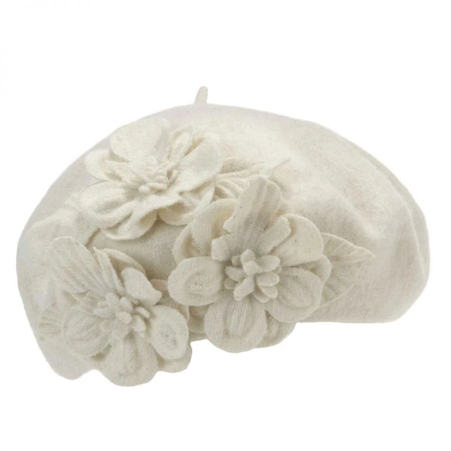Introducing the Betmar Flower Wool Beret in a great collection of colors. Featuring a classic beret design, the Betmar Flower Beret is crafted of soft wool with a top tassel and lovely self-felt flower accoutrements. A beautiful and feminine take on the timeless fall and winter staple.