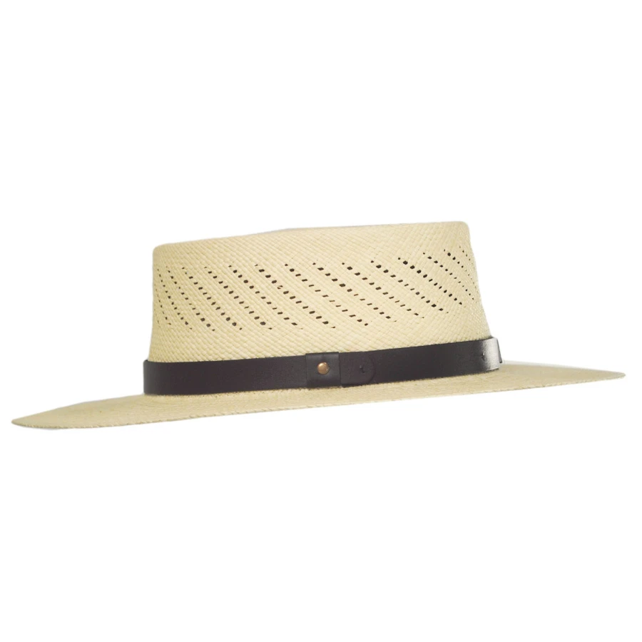 A beautiful panama straw with a gambler silhouette, Bigalli has made another stunner with the Harlow Vented Panama Straw Gambler Hat. With a telescope crown and flat brim, we love this look paired with the expert craftmanship needed to weave a panama straw hat. Our favorite part, the enviromentally concious hat band made of recycled leather. We love to see it!