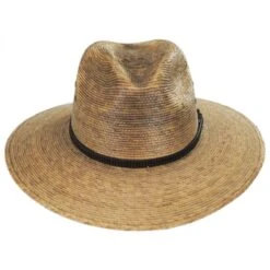 Enjoy stellar UPF 50+ sun protection in a stylish hat crafted of hardy palm leaf straw. The Palm Leaf Straw Aussie Hat by Kenny K features a classic Aussie-inspired design complete with wide, downturned brim and handsome faux leather hat band. Three ventilation eyelets per side provide additional ventilation to help keep you cool; the Palm Leaf Aussie is unlined for maximum breathability.