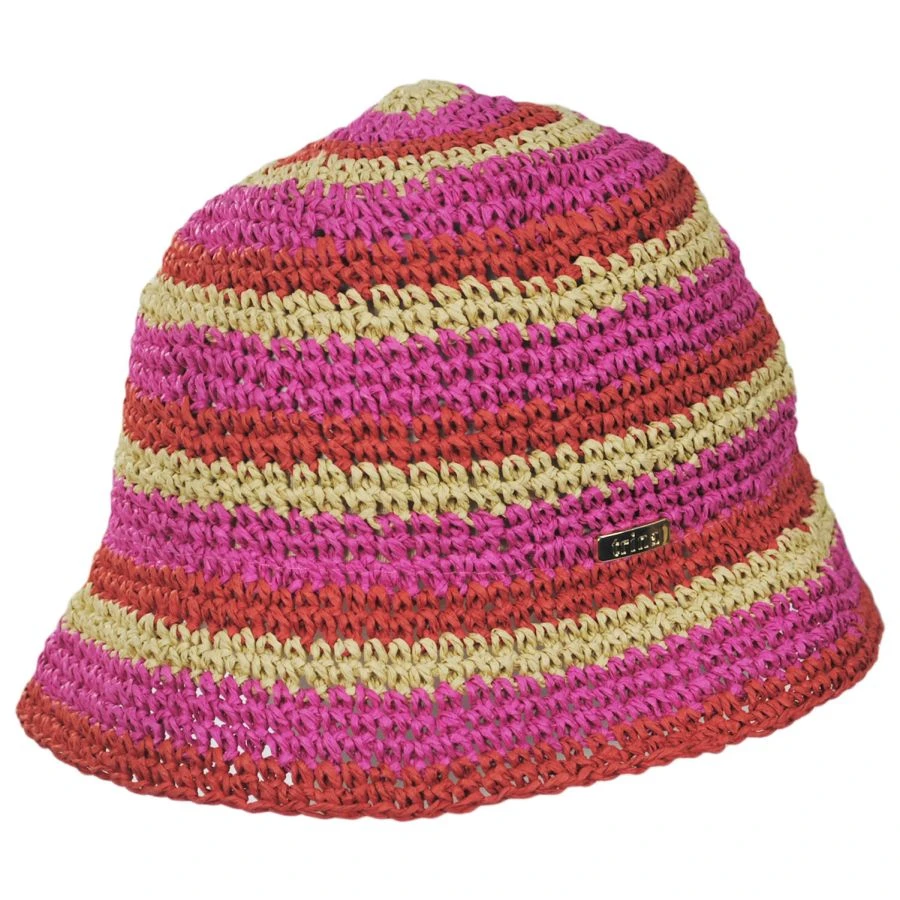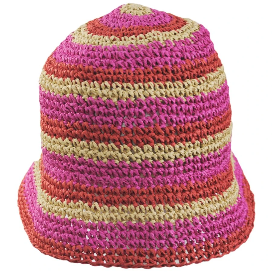 A multicolored dream, that’s the Palo Striped Crochet Toyo Bucket Hat by Trina Turk. This bucket hat is made of toyo straw in simple but delicate crochet. The result is a slightly structured bucket with a multicolored striped pattern that is sure to captivate and delight. The crochet body also allows for plenty of ventilation making is a practical hat for spring and summer.