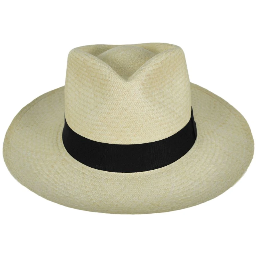 In need of an elegant and comfortable hat this season? The Panama Straw Grade, 10 Diamond Crown Fedora Hat by Hats Montecristi is made in Ecuador and crafted with 100% genuine Panama straw. Grade 10 denotes a fine weave giving it a flexible, soft, and supple feel. It features a sophisticated grosgrain ribbon hat band, a diamond crown, and an upturned brim.