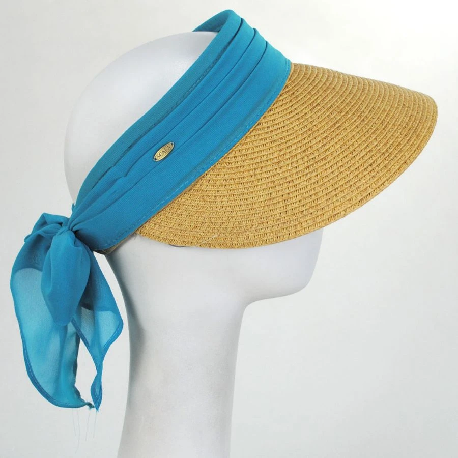 This summer, Scala wants you to take it easy, and that’s why they’re unveiling the Elena Chiffon Toyo Straw Visor! This gorgeous visor is so stunning, thanks to the chiffon hat band wrapping around the open crown, tied with a bow. Additionally, you’ll be comfortable wearing this visor, thanks to the grosgrain ribbon sweatband on the interior of the open crown.