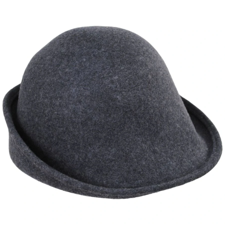 The Six Way Wool Felt Hat by Toucan Collection is so simple and chic, stripping everything back to celebrate the classic cloche style of the 1920s. The classic bell shape shines with no adornments to disrupt the seamless flow from crown to brim, also making it easy to wear this hat different ways. Comes with a ‘six ways to wear’ tag to show you the versatility of this cloche. A wool felt finish, this hat has a overwelt brim and an unlined interior.