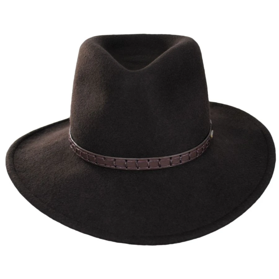 A Stetson original, the Sturgis Crushable Wool Felt Outback Hat, is a classically built outback with a packable/crushable build and a water repellent finish. Made in the USA of 100% wool, the Sturgis. The only accents, a simple leather hat band and a Stetson metal side pin.
