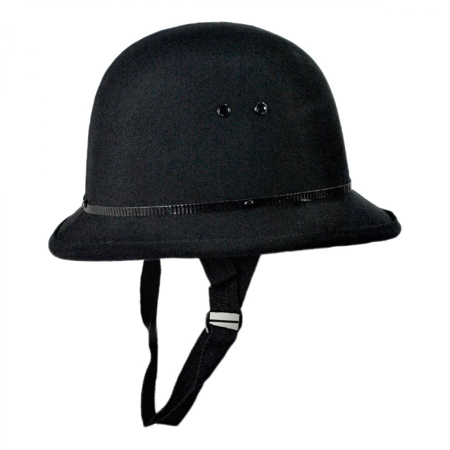 Most know this replica hat as that worn by the officers of the London Metropolitan Police Force, also known as “bobbies”. It is hand made of the same core material as our pith helmets. Unfortunately, we do not have the replica badges for this helmet, but various badge options are usually available at Ebay. This is a great hat for theatrical productions needing a Bobby Helmet. Police paraphanalia collectors also like this facsimile item.